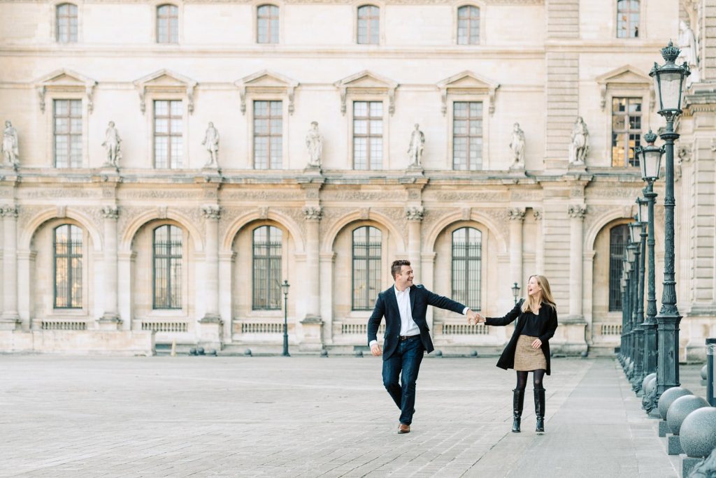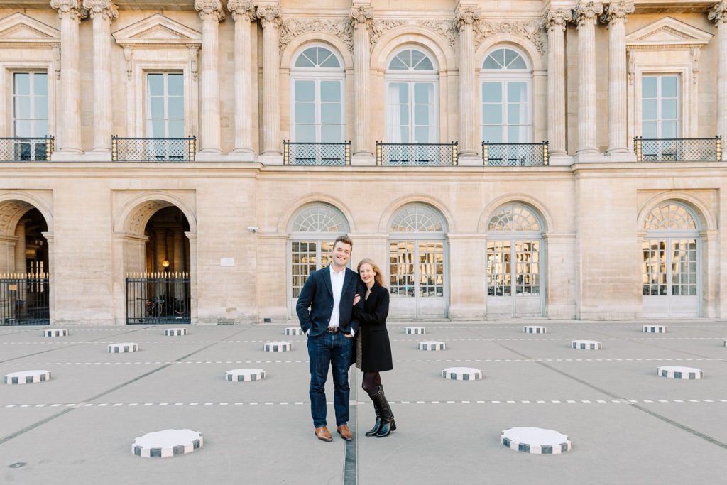 There are a lot of great locations for couple’s photo shoots or engagement photo sessions in Paris, no matter what the season. However, we’re not quite in the tropics, so winter means barren trees and often gray skies. That’s why I prefer to leave the parks for the spring and summer photo sessions and go to place with a lot of architectural details like the Louvre, the Palais Royal, Montmartre, Trocadero, Bir Hakeim Bridge and Place Vendome.