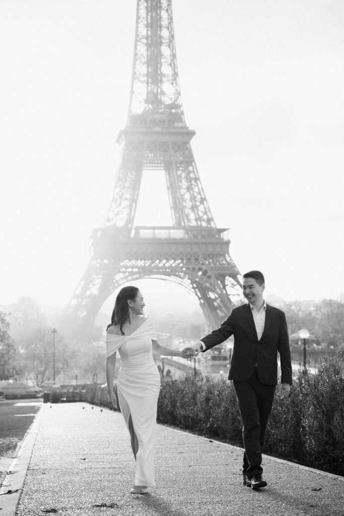 That’s why, as a Paris prewedding photographer, my photo sessions are focused on the couple, their love, their emotion. Paris is a stunning background that compliments, but never overpowers the love story. That’s why my Paris prewedding sessions aren’t big productions, just me and my cameras. While I don’t pose my couples, I give them small prompts in order to make them comfortable and have fun. My favourite photos have movement, laughter, dancing and a lot of love!